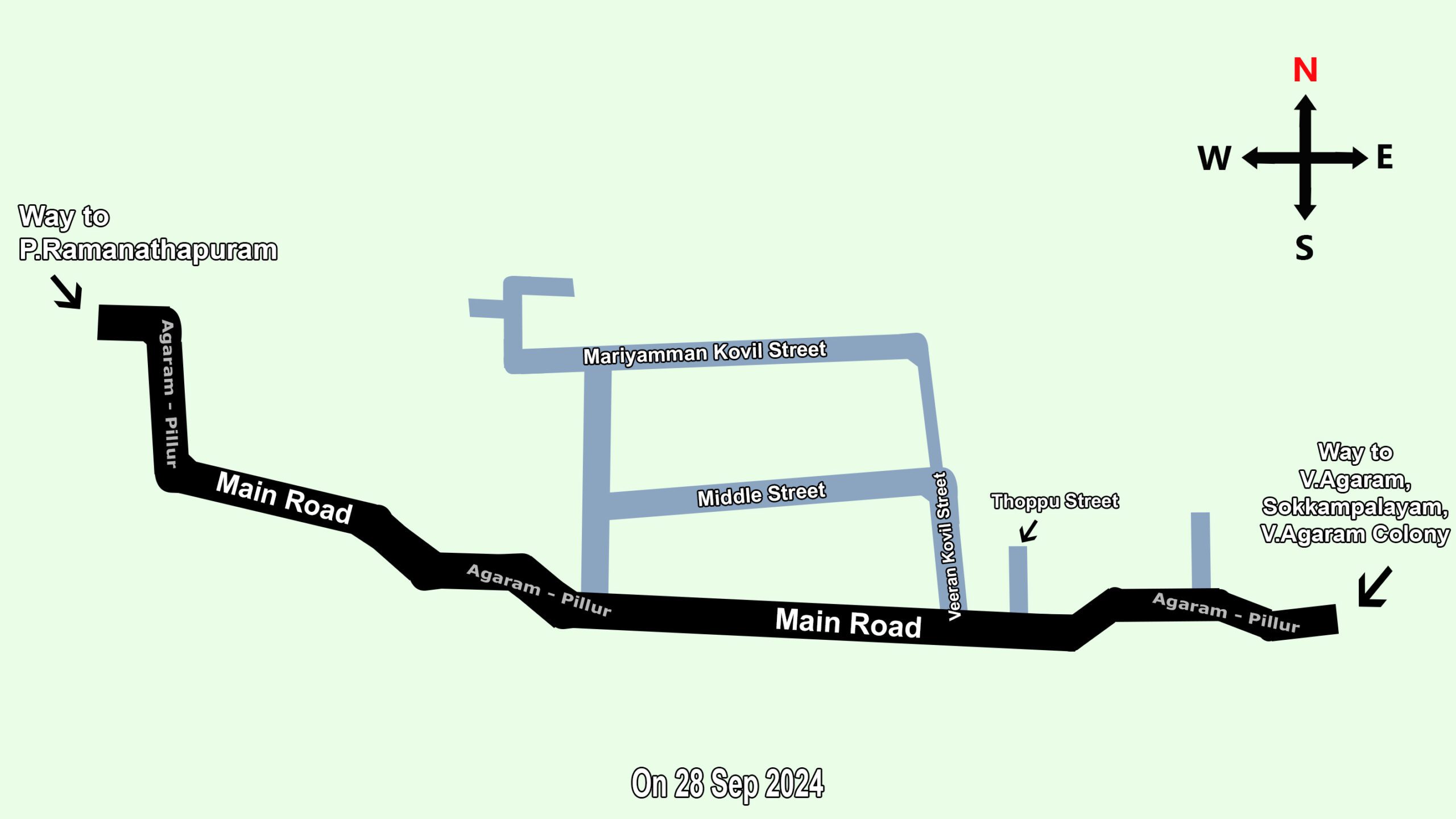 Neighbouring villages : The neighboring villages include V.Agaram Colony , Sokkampalayam , Vengadathiri Agaram and P.Ramanathapuram.